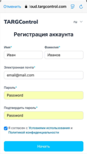 С мобильного устройства – процесс аналогичный – получаем приглашение, на мобильном устройстве открываем приложение TARGControl (убедитесь, что установлена последняя актуальная версия приложения):