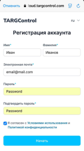 С мобильного устройства – процесс аналогичный – получаем приглашение, на мобильном устройстве открываем приложение TARGControl