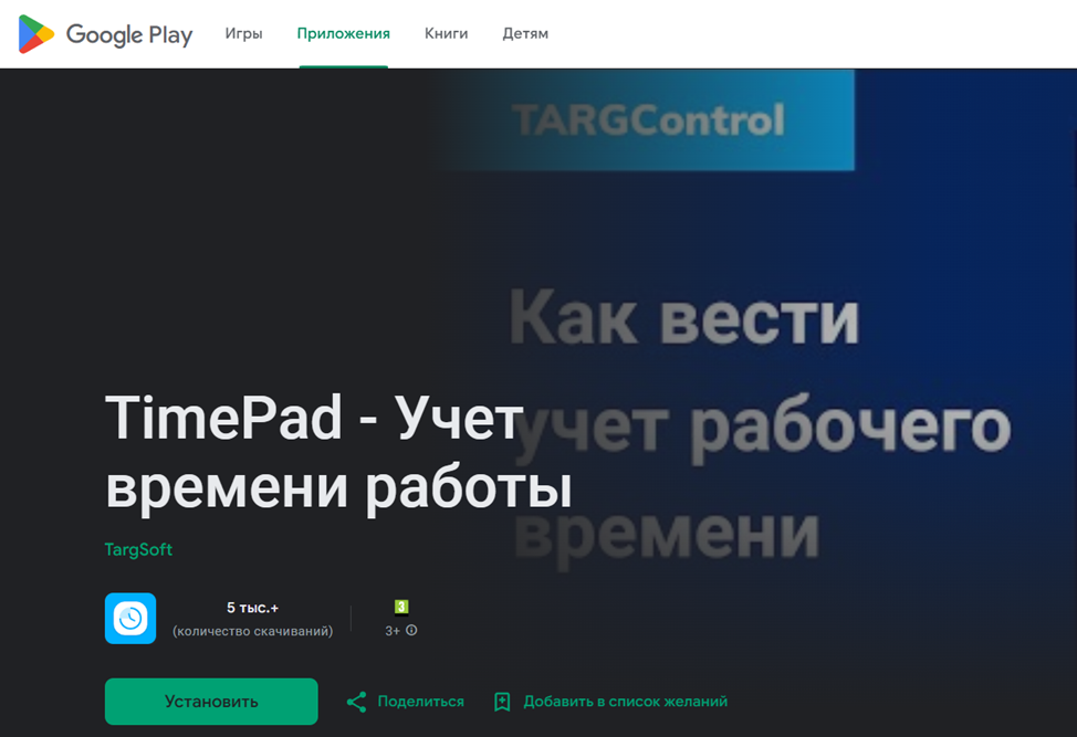 1. Скачать приложение TARGControl TimePad в .