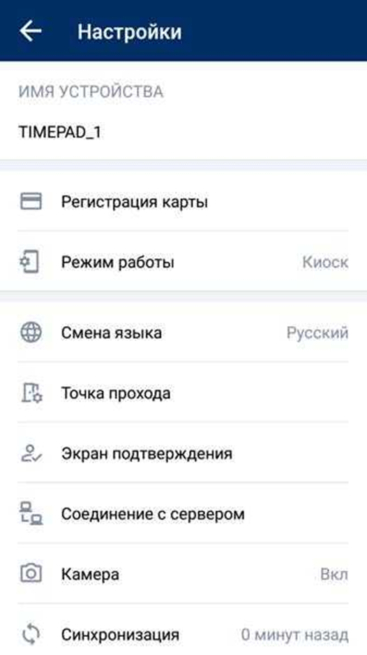 1. Чтобы перейти в настройки устройства, нажмите на значок шестеренки сверху экрана идентификации.