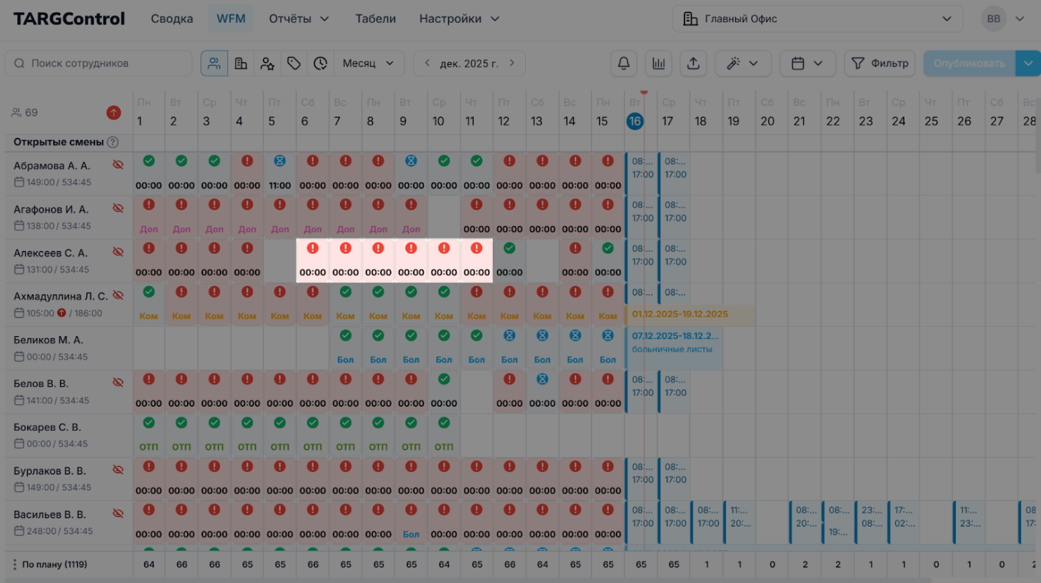 После согласования нарушений день не закрывается автоматически — для завершения работы с ним необходимо нажать Подтвердить. После этого день считается закрытым и исключается из дальнейших изменений.
