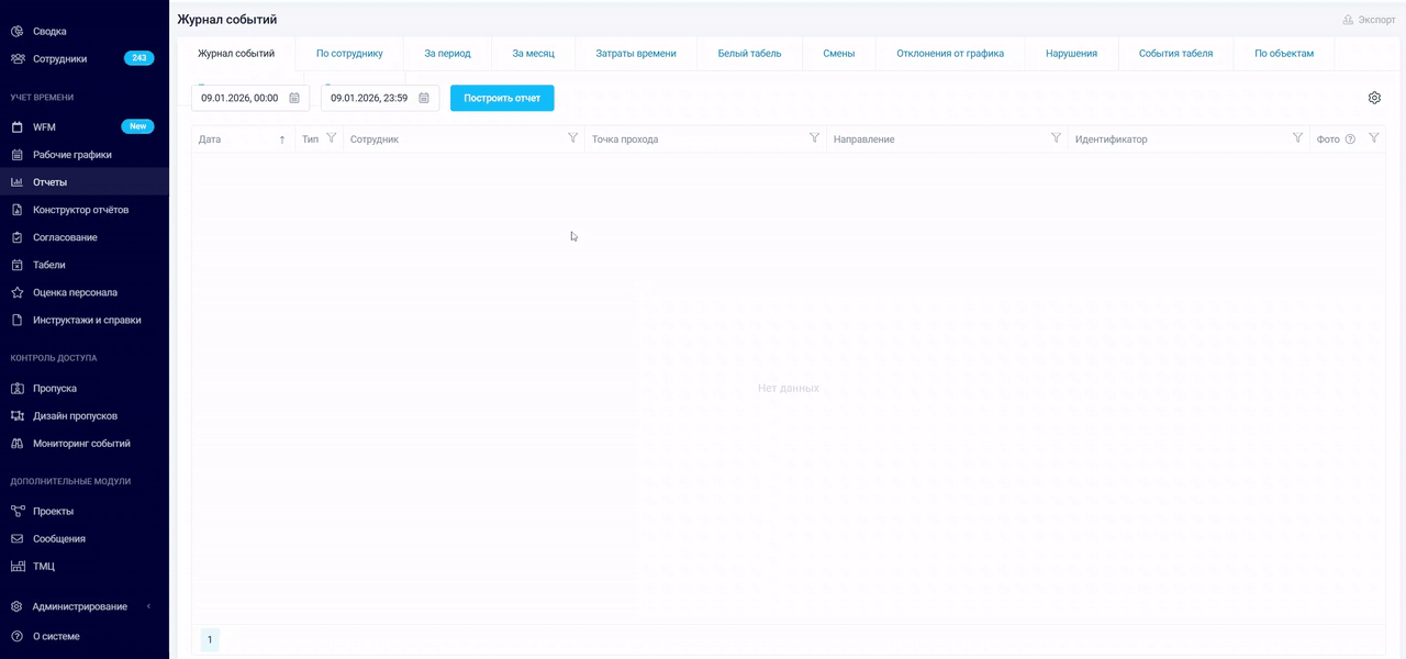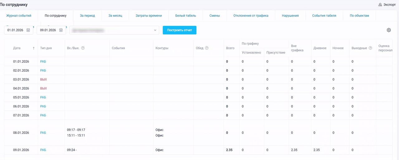 Отчет «За период» предназначен для анализа истории работы целых подразделений или выбранных групп сотрудников. Он является расширенной версией отчета «По сотруднику», позволяя консолидировать данные по нескольким людям в одной таблице за любой промежуток времени.
