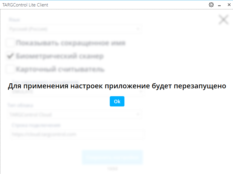 После установки TARGControl Lite Client запустите приложение. В появившемся окне нажмите на кнопку “Настройки” в правом верхнем углу.