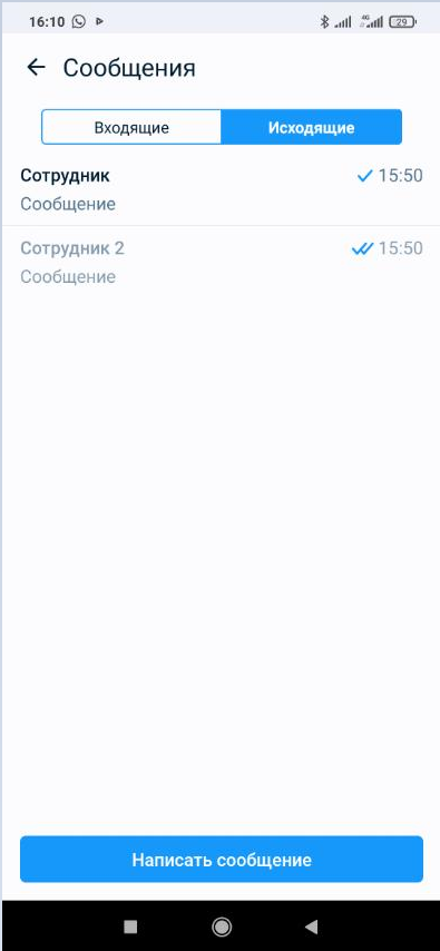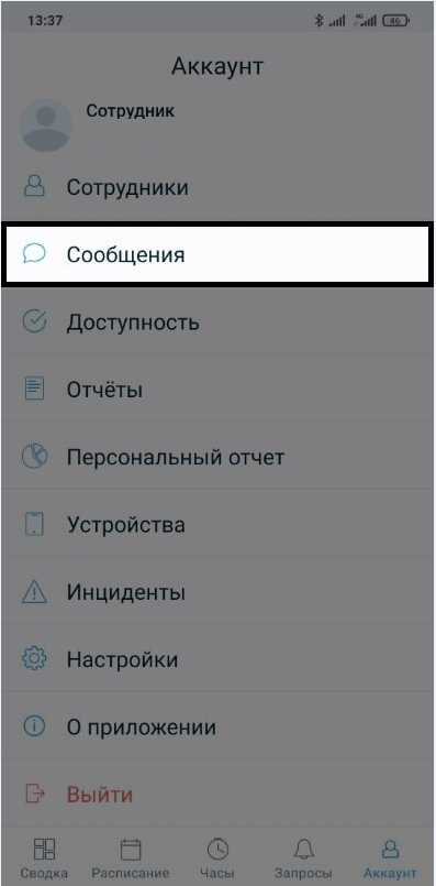 Сотрудник может просмотреть сообщения, но не может их отправлять в отличие от администратора.
