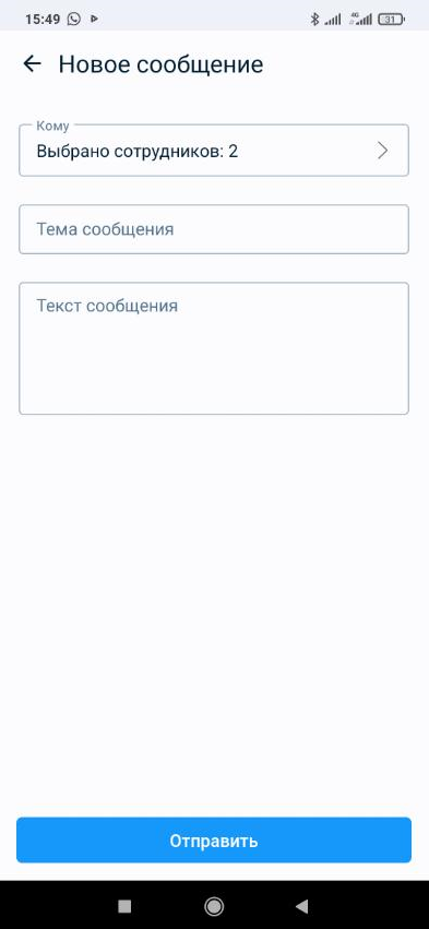 Выберите сотрудников, укажите тему и текст сообщения, после чего нажмите Отправить: