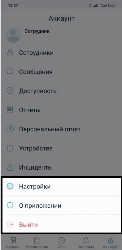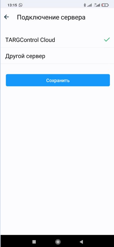 Вкладка настроек в мобильном приложении TARGControl App