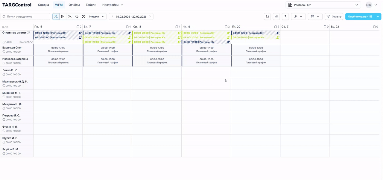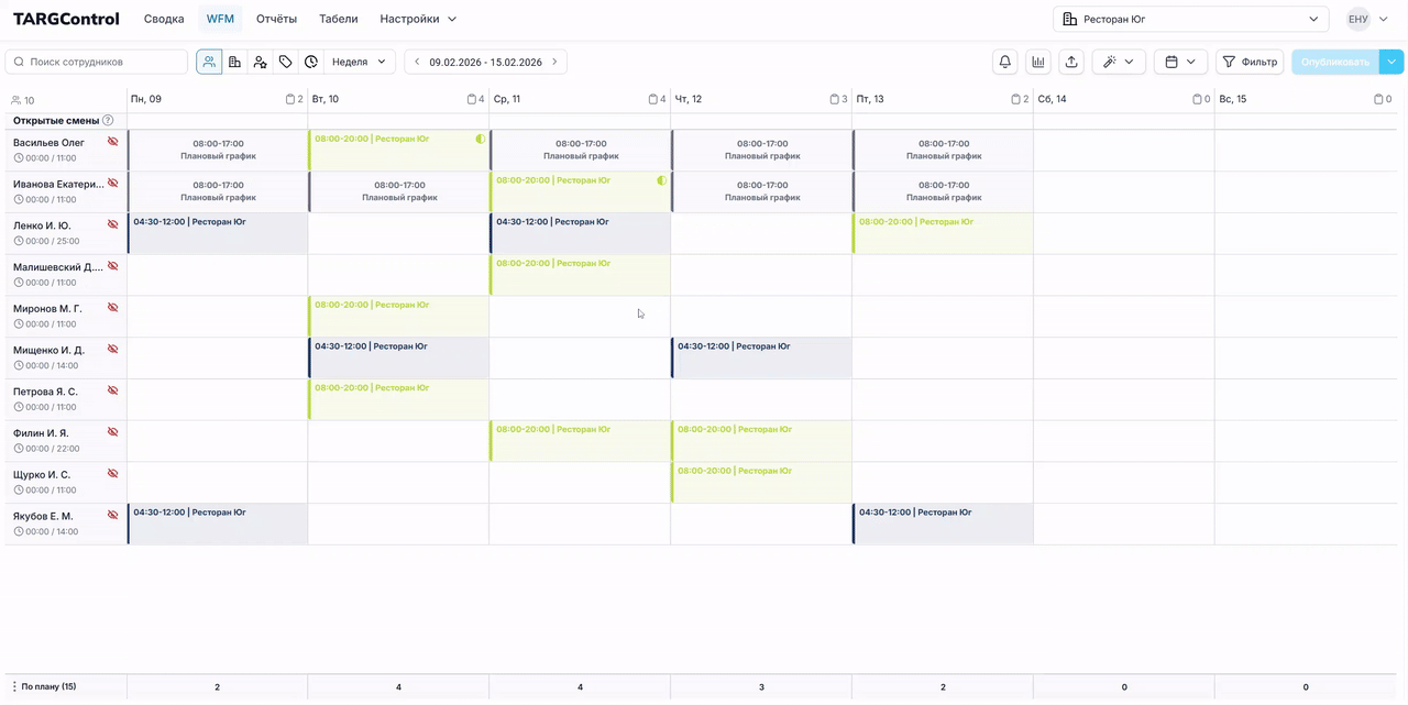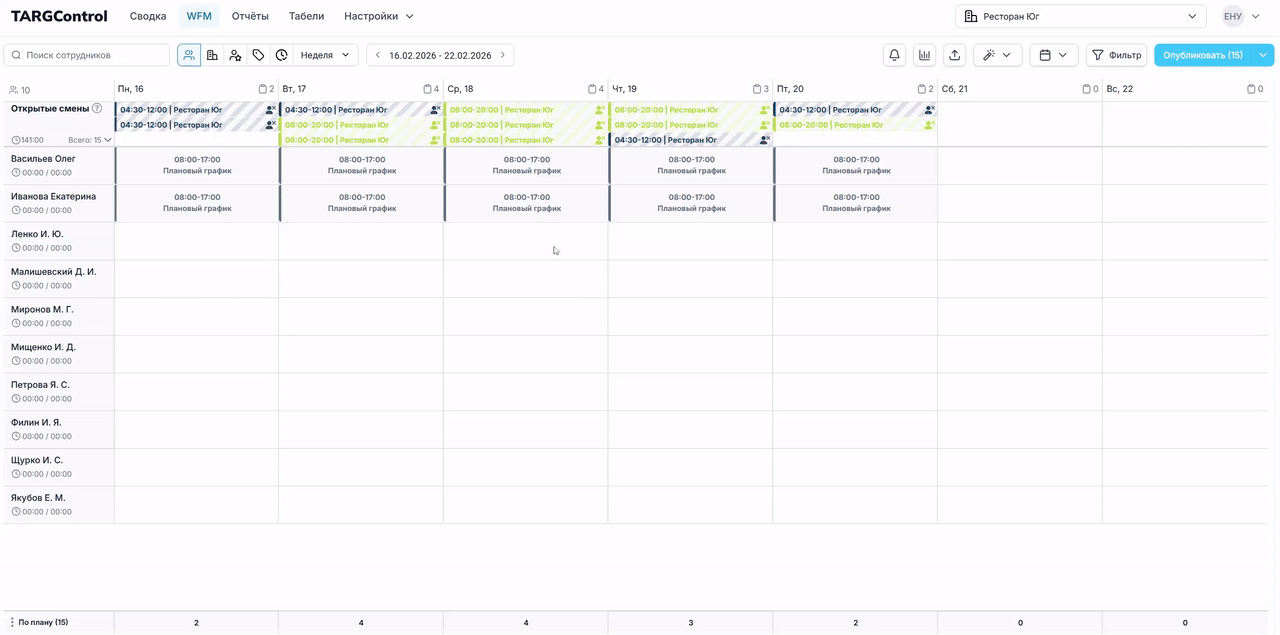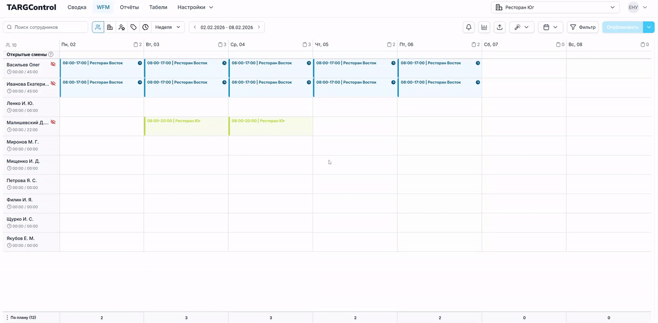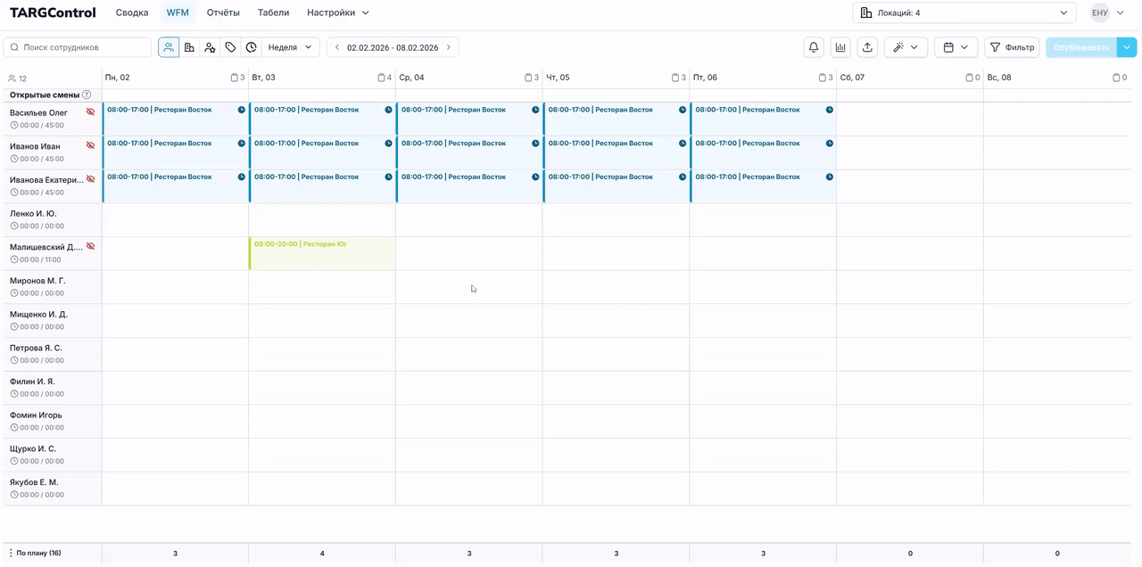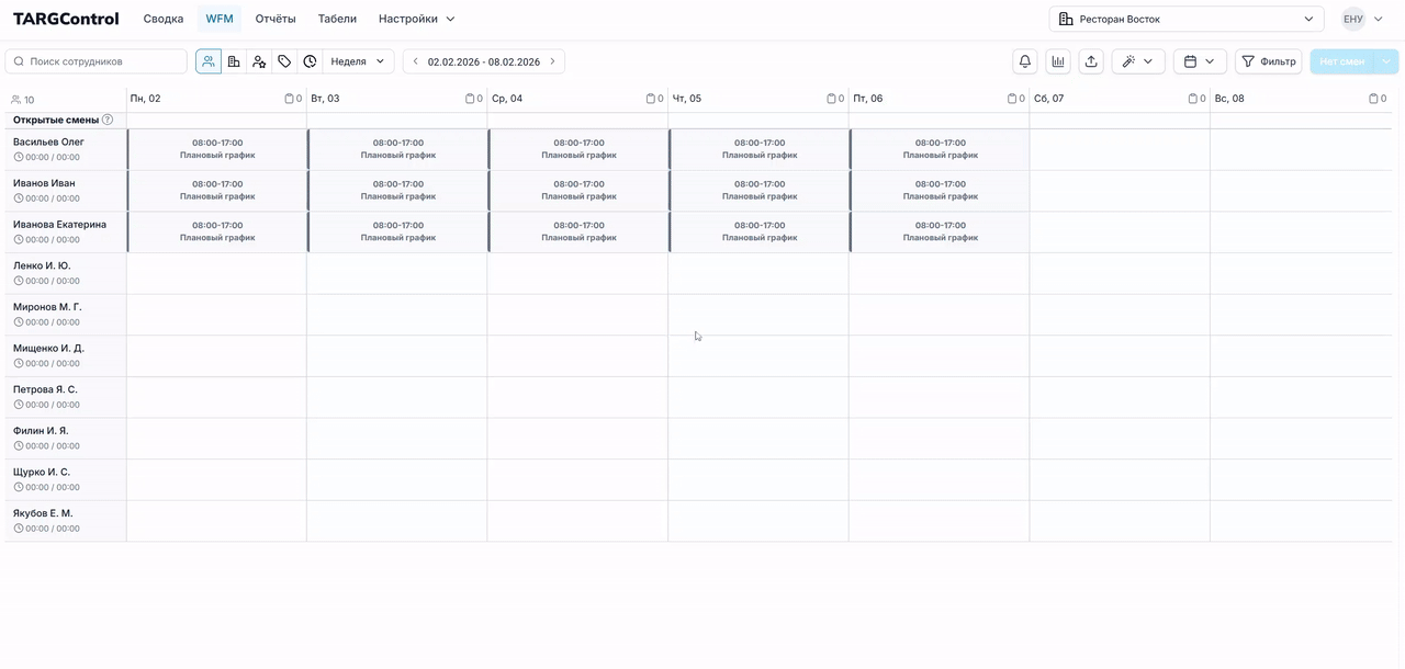 Page: 4. Копирование смен с предыдущей недели/месяца