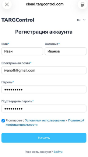 Page: Мобильное приложение TARGControl